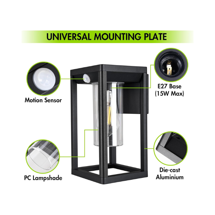 Apportez sécurité et élégance à vos espaces extérieurs avec Applique lantern avec detecteur, une solution idéale pour un éclairage jardin Tunisie moderne et efficace. Son design inspiré des lanternes classiques s’associe à une technologie contemporaine. Ainsi, elle illumine votre extérieur tout en décorant votre façade.