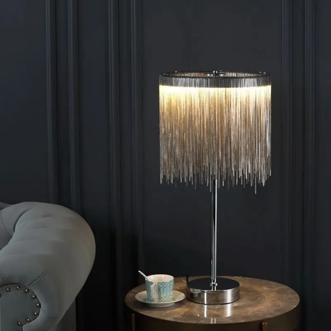 Apportez du charme et du raffinement à votre intérieur avec la Lampe chevet élégante Drop. Inspirée des guirlandes et chaînes élégantes, cette lampe de table en Tunisie crée une ambiance romantique et mystérieuse. Son design unique attire immédiatement l’attention. De plus, elle allie style et fonctionnalité.
