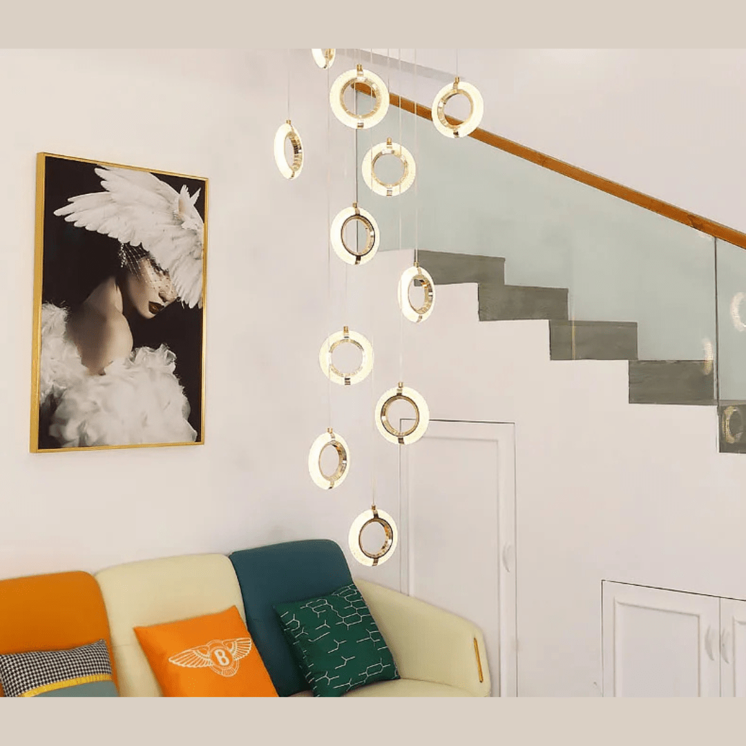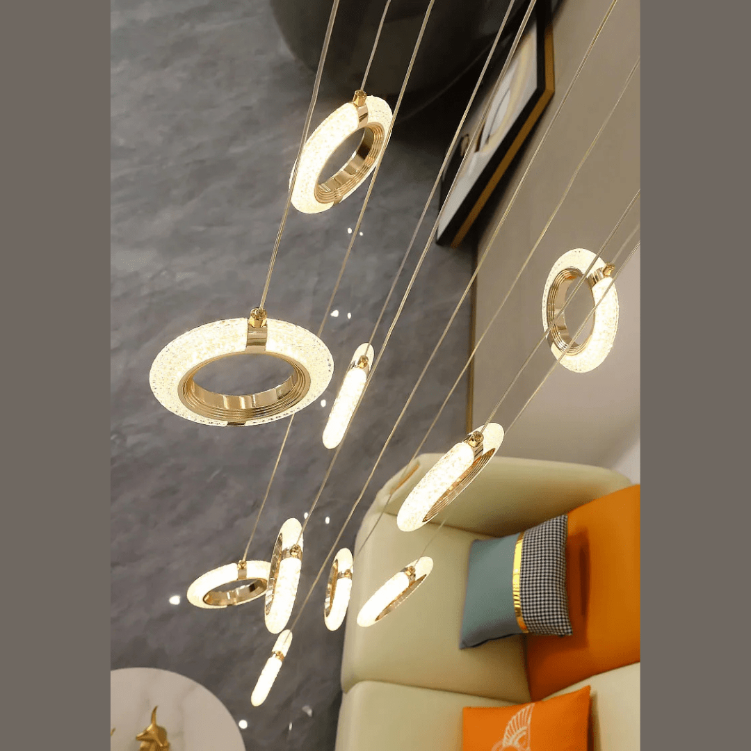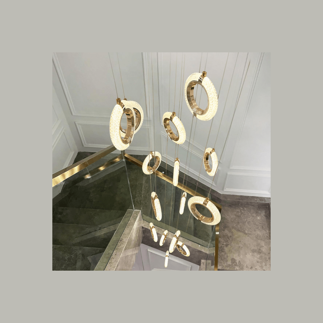 Découvrez le lustre double hauteur 9 anneaux en cristal, une création majestueuse pensée pour sublimer les grands espaces. Ce lustre double hauteur en Tunisie allie élégance et innovation grâce à ses neuf anneaux LED suspendus, formant un ensemble harmonieux et spectaculaire. Idéal pour les escaliers, halls d’entrée ou salons spacieux, il transforme votre intérieur en un lieu raffiné et lumineux.