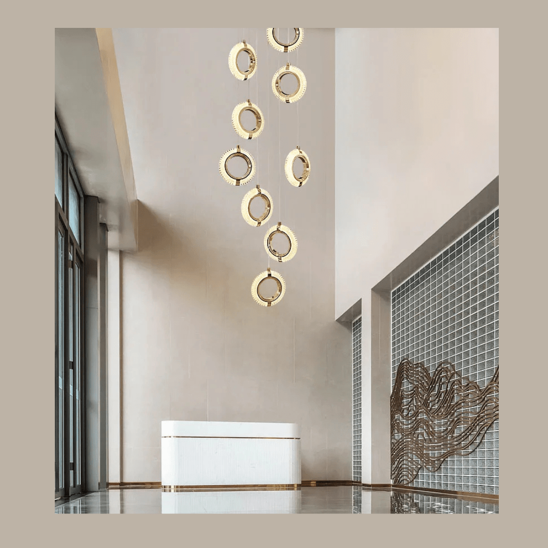 Ce lustre double hauteur cristal en Tunisie séduit par son équilibre entre modernité et luxe. Grâce à sa technologie LED, il combine performance énergétique et esthétisme. Chaque anneau suspendu semble flotter dans l’air, apportant un mouvement léger et un charme unique à votre espace.