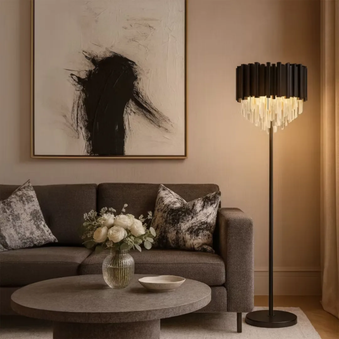 Luxury lampadaire en cristal incarne la rencontre parfaite entre raffinement et modernité. Sa structure en métal noir, fine et stable, soutient une cascade de cristaux éclatants qui captivent le regard dès le premier instant. Grâce à son design raffiné et à sa finition brillante, il transforme n’importe quel espace en un lieu sophistiqué et lumineux.